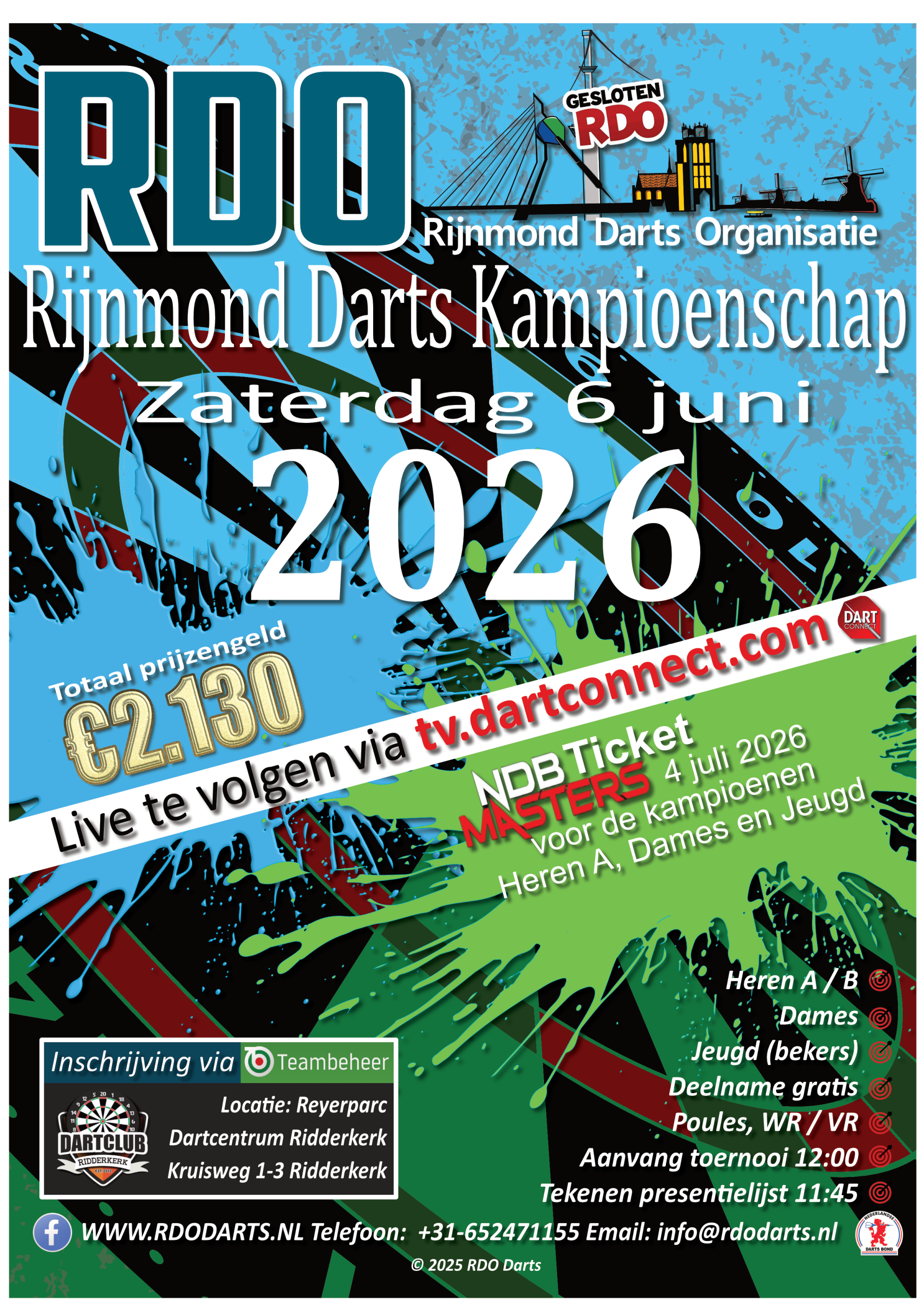 Op zaterdag 6 juni 2026 organiseren we ons "eerste" Rijnmond Darts Kampioenschap.